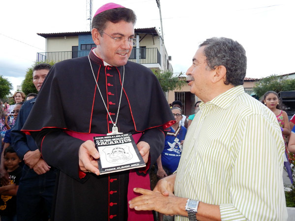 No momento da recepção, o prefeito Lincoln Matos entregou a Dom Francisco de Assis, um exemplar do livro “Ultimo Berço dos Tacarijus”.