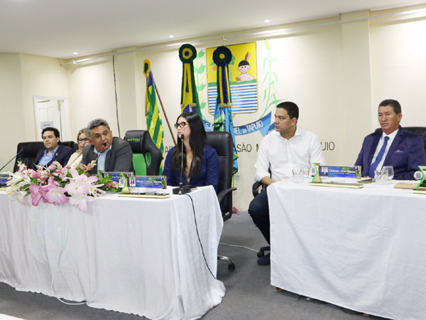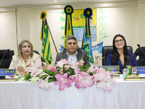 A solenidade foi conduzida pelo presidente da Casa, o vereador Lucimar Soares de Morais, e contou com a presença do prefeito Pompílio Evaristo Cardoso Filho “Pompilím” e do vice-prefeito Ribamar Neto.